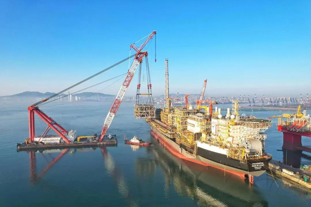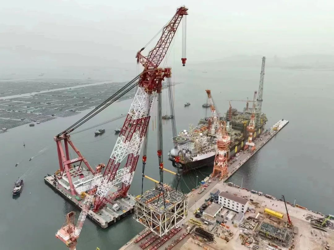 近日,随着最后一个模块精准落位,“新振浮7”轮顺利完成业主FPSO模块第二批次的吊装任务。