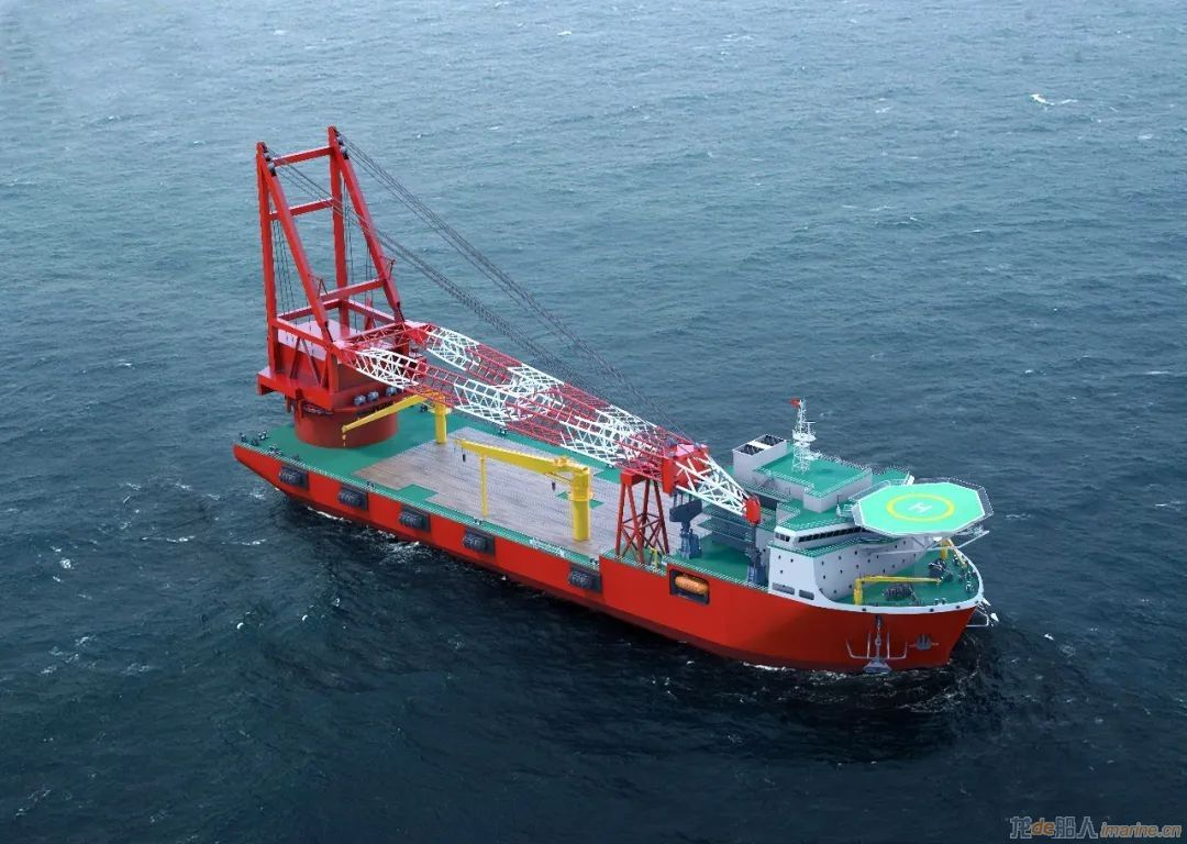 据招标公告,该船的船体和起重机分开招标,起重船船体拖至起重机制造厂进行总装、试验取证。
