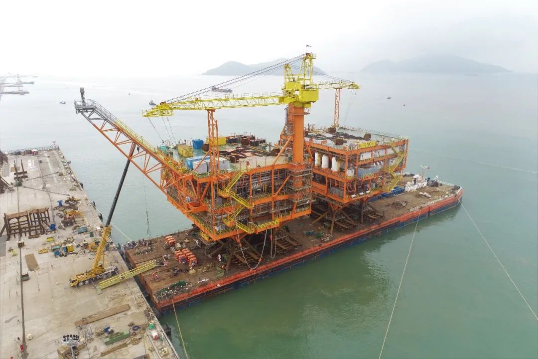 近日,由中国海油与韩国SK earthon联合建造的陆丰12-3平台上部组块在广东珠海完成装船作业,进入海上安装和联调阶段,标志着南海最大合作油田开发项目继深水导管架完成海上安装后又迈出坚实一步。