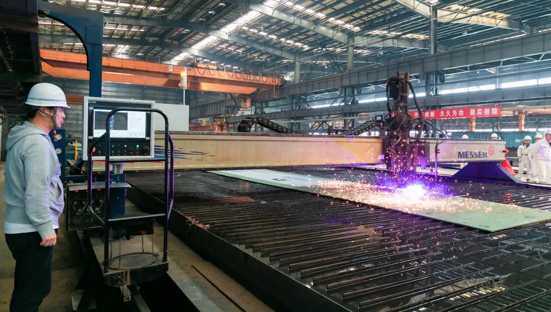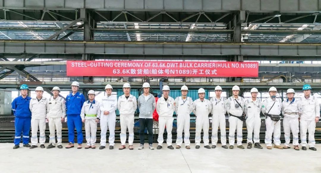 5月10日上午,舟山中远海运重工为交银金融租赁有限责任公司建造的第4艘6.36万吨散货船N1089在公司一号船体车间割板开工。
