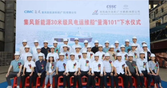 5月9日,英辉南方为集风新能源科技(广东)有限公司设计建造的30米级风电运维船“量海101”顺利举行下水仪式。