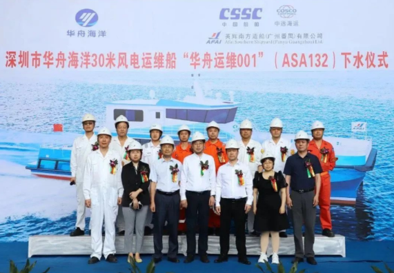 5月10日,英辉南方为深圳市华舟海洋发展股份有限公司设计建造的30米级风电运维船“华舟运维001”顺利举行下水仪式。