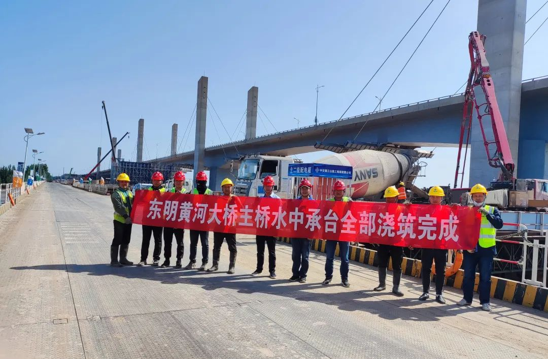 5月8日下午,随着东明黄河公路大桥改扩建工程最后一个水中承台浇筑完工,标志着由振华重工投资建设的东明黄河公路大桥改扩建工程水中承台施工任务已全部完成。