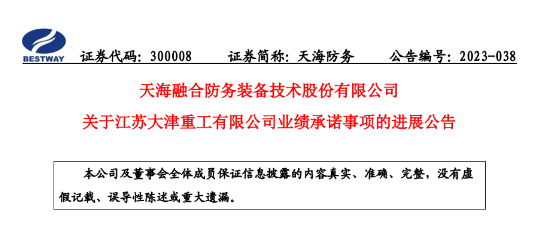 5月13日,天海防务发布公告,子公司大津重工未达到业绩承诺,触发了业绩补偿条款,上海佳船企业发展有限公司(以下简称“佳船企业”)及其实际控制人刘楠需补偿7.3亿元。