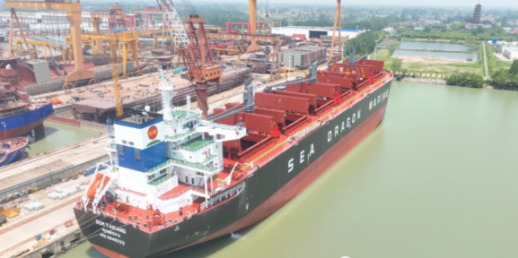 中船澄西扬州公司6号64000吨木屑船提前77天胜利交付