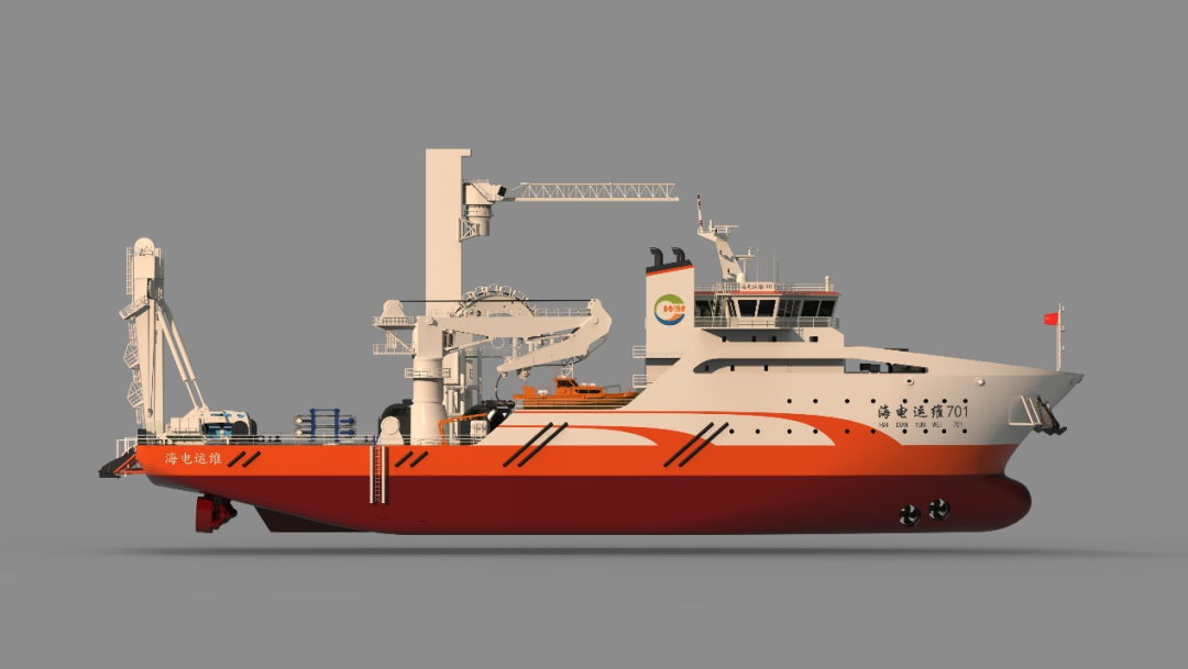 该船是一艘全钢质、双底双壳、长首楼、中部设风电运维设备、艉部设布缆作业甲板、主船体内设电动缆盘的多功能运维母船,针对国内海上风场在恶劣海况下施工维护难、作业窗口期短而研发的新型装备,具备海缆抢修、风场内区间缆铺设、风场守护等多项功能,能够在恶劣海况下实现定点定向作业、灵活穿梭和物品定点转移等多项目标。