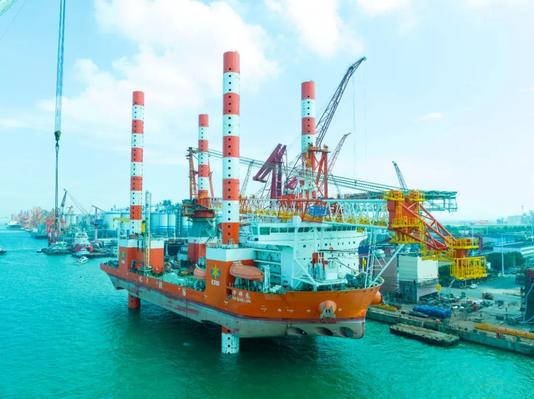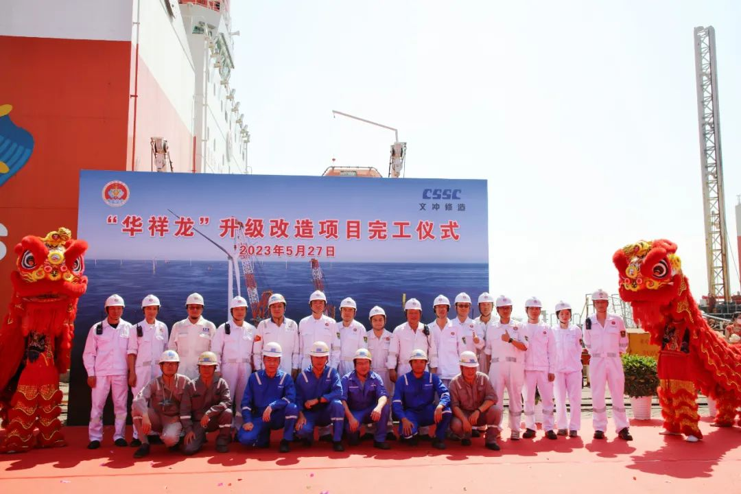 “华祥龙”轮是一艘插桩式抢险打捞工程船,主要用于广州打捞局辖区海域及近海浅水水域应急清障和抢险打捞作业。经过近5个月的艰苦奋战,“华祥龙”轮升级改造项目提前10天完工,改造完成后能满足水深65米以下海上风电施工,具备12-16兆瓦机型海上风机安装能力,在近海救捞抢险、无限航区调遣具有较高的作业功效。