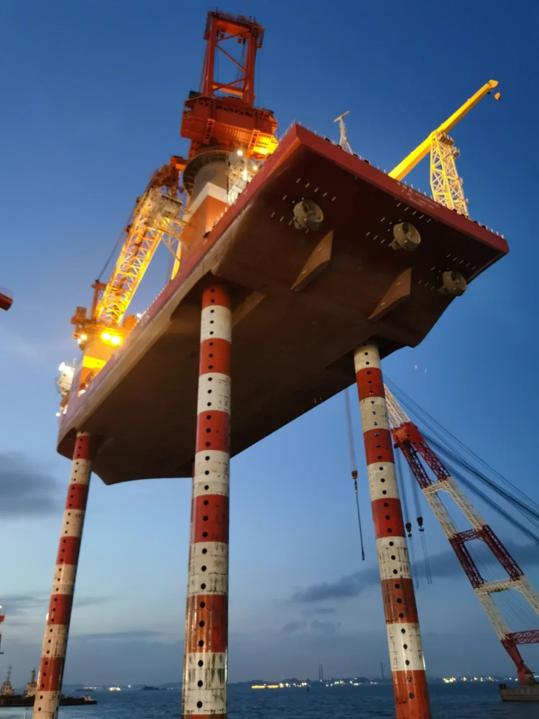此次“华祥龙”轮升级改造,所有桩腿吊装,全部是在水面通过浮吊配合完成,或是船舶浮态、或是在站桩的状态下,这在国内插桩式平台改造乃至新造,尚属首次。