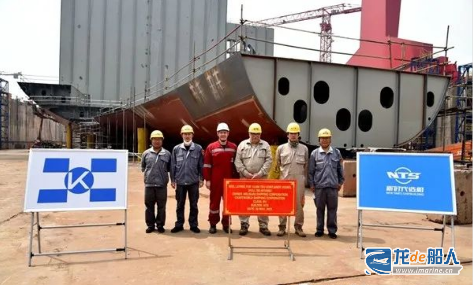5月26日,新时代造船2#坞区域13000箱集装箱船的船体结构进坞合拢正式开始。