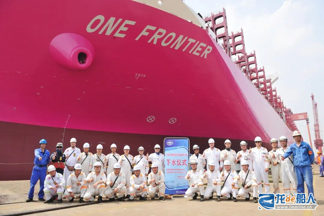 6月2日下午,新扬子造船为SEASPAN公司建造的第4艘15000TEU集装箱船,在拖轮的牵引下缓缓驶入长江,靠泊舾装码头进入水下调试阶段。