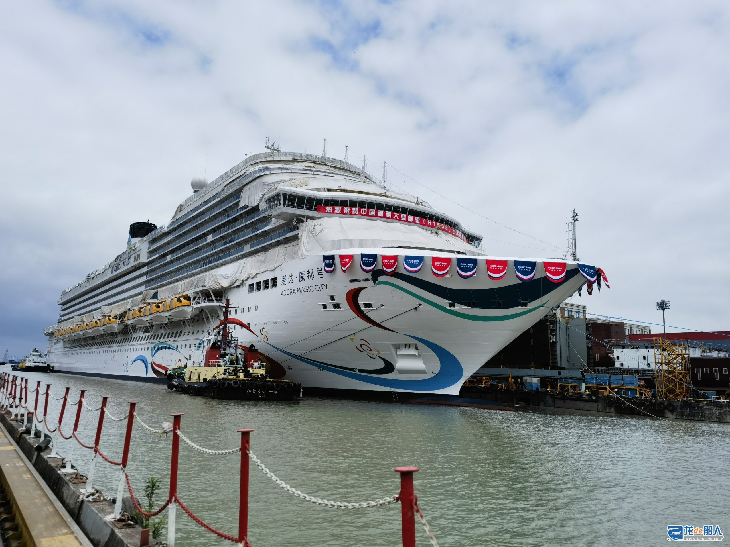 6月6日,我国首艘国产大型邮轮“爱达·魔都”号在中国船舶集团有限公司旗下上海外高桥造船有限公司2号船坞顺利出坞,即将开启码头系泊试验、出海试航和命名交付。