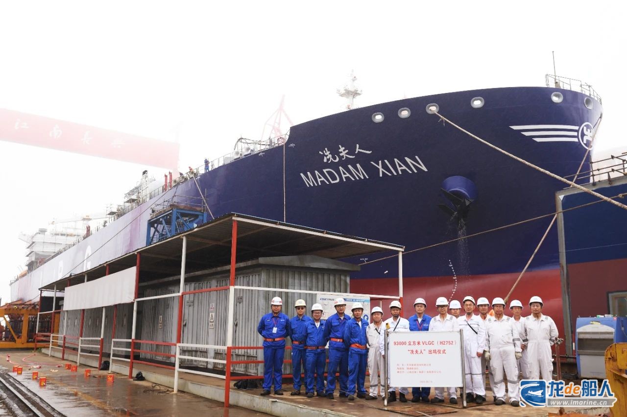 同日,江南造船为东华能源建造的首艘93000立方米超大型液化气运输船(VLGC)(H2752船)和为PETREDEC公司建造的第五艘 93000 立方米VLGC(H2739船)在4号船坞出坞;同系列后续两艘半船以及为SEASPAN公司建造的首艘15500TEU集装箱船巨型环段同步起浮。