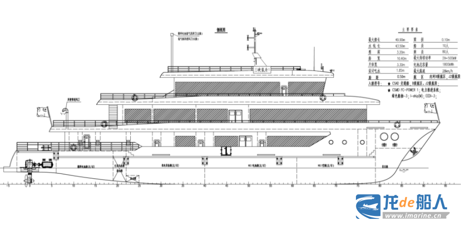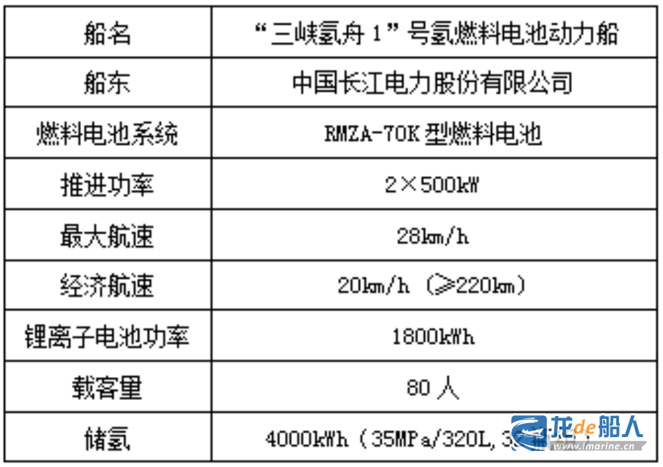 船舶交付后将主要用于三峡库区及两坝间交通、巡查、应急等,具有高环保性、高舒适性和低能耗、低噪音等特点,“三峡氢舟1”号具体技术参数见下表。