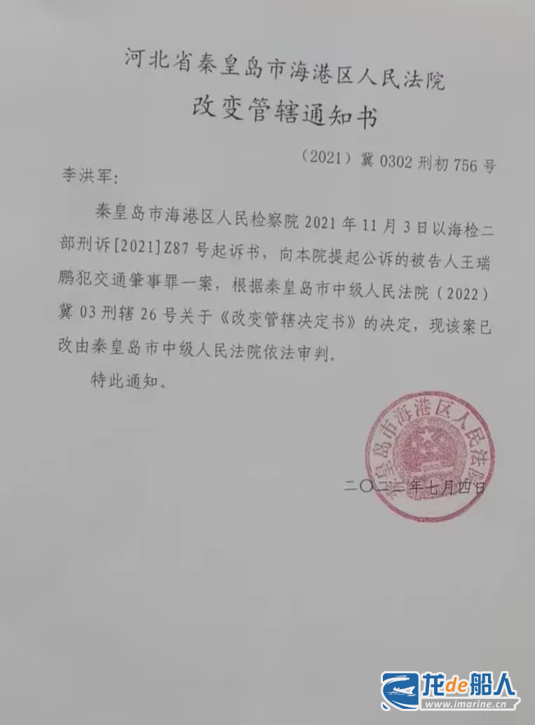 此案改由秦皇岛中院管辖。