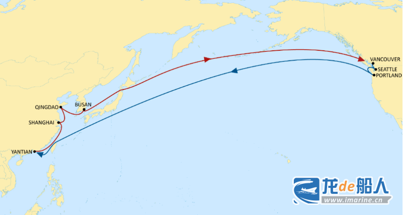 新的挂靠港序为:盐田-上海-青岛-釜山-温哥华-西雅图-波特兰-盐田。