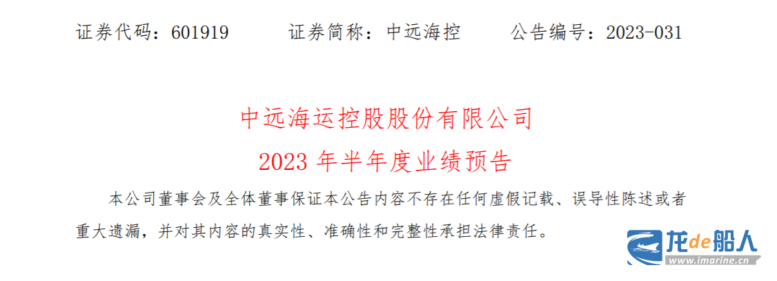 7月4日,中远海运控股股份有限公司发布《2023 年半年度业绩预告》。
