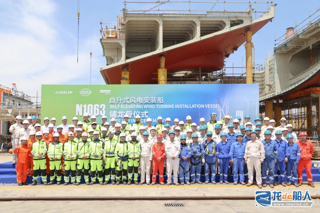 7月5日,启东中远海运海工为Cadeler公司建造的N1063自升式风电安装船举行铺龙骨仪式。