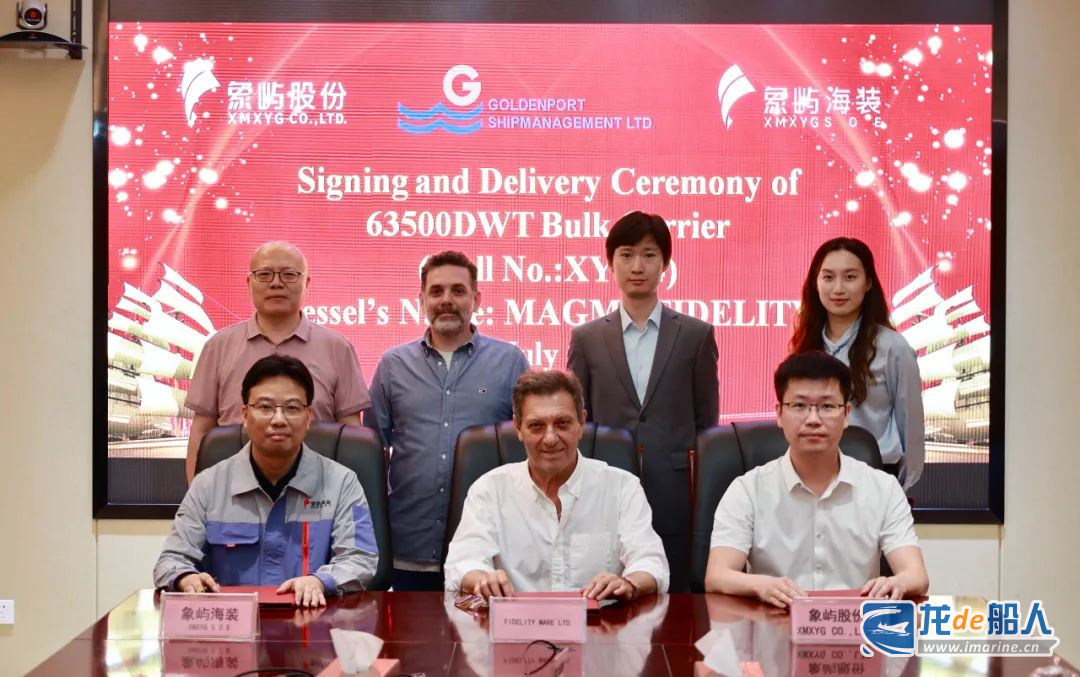 7月18日,象屿海装为希腊Goldenport公司建造的63500DWT散货船(XY104)签字交付。