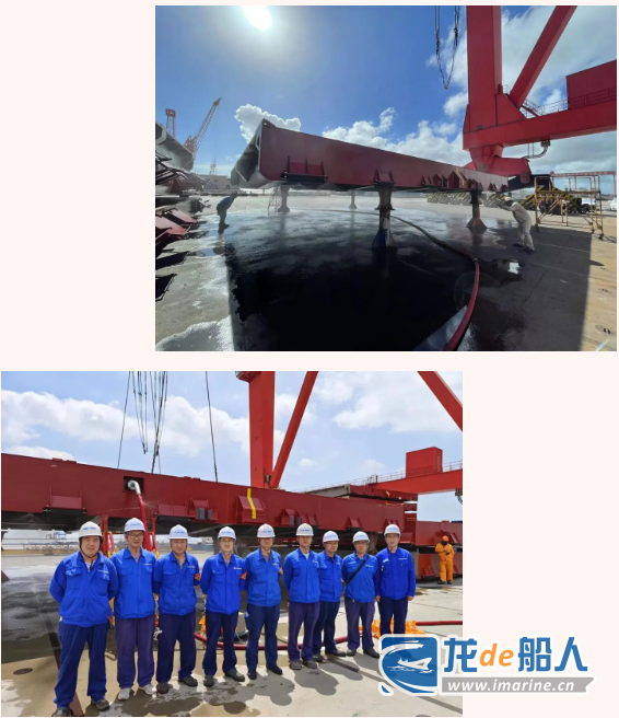 该船舱口盖水喷淋功能试验是自外高桥造船承接7000TEU箱船系列船以来在箱船“四大件”工序前移方面又一次突破进展,不仅优化了施工流程、实现了工序前移,还为后续箱船舱盖水喷淋功能的试验树立了标杆。