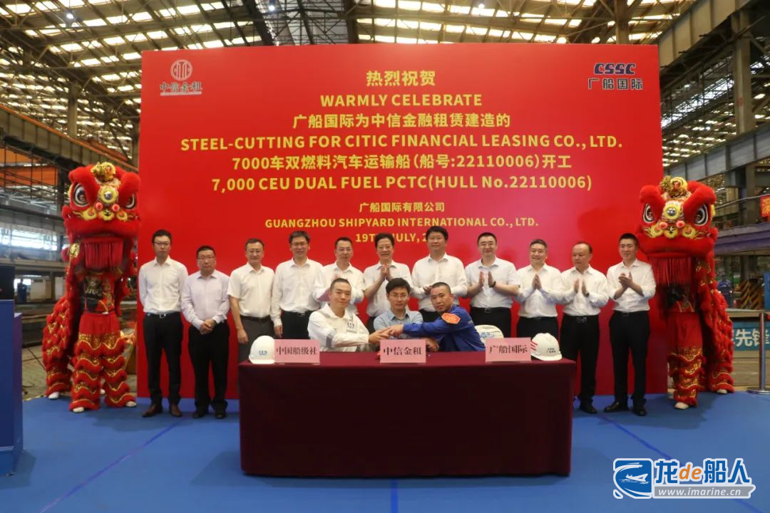 7月19日,广船国际为中信金租建造的7000车LNG双燃料PCTC1号船(中远海运特运系列2号船)开工。