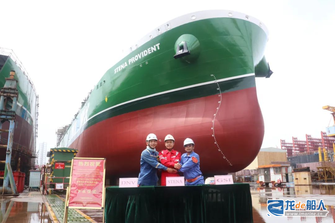 7月18日,广船国际为Stena Proman 公司建造的5万吨甲醇双燃料油船5号船在平台线下水。