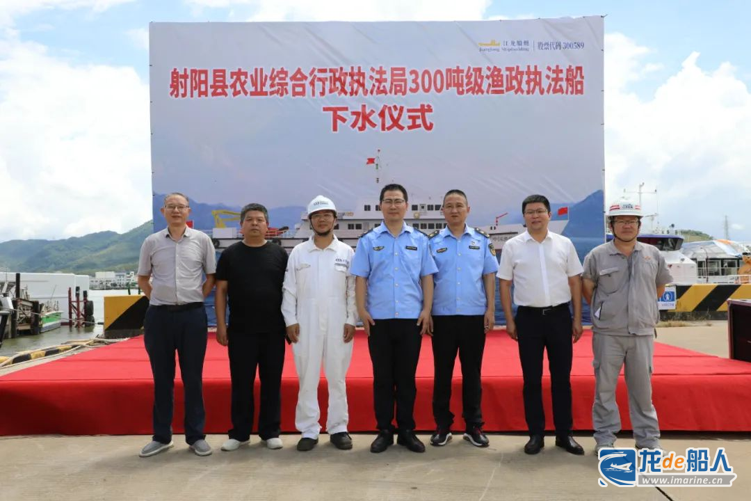 近日,江龙船艇承建的江苏省射阳县农业综合行政执法局50米/300吨级渔政执法船喜迎下水。