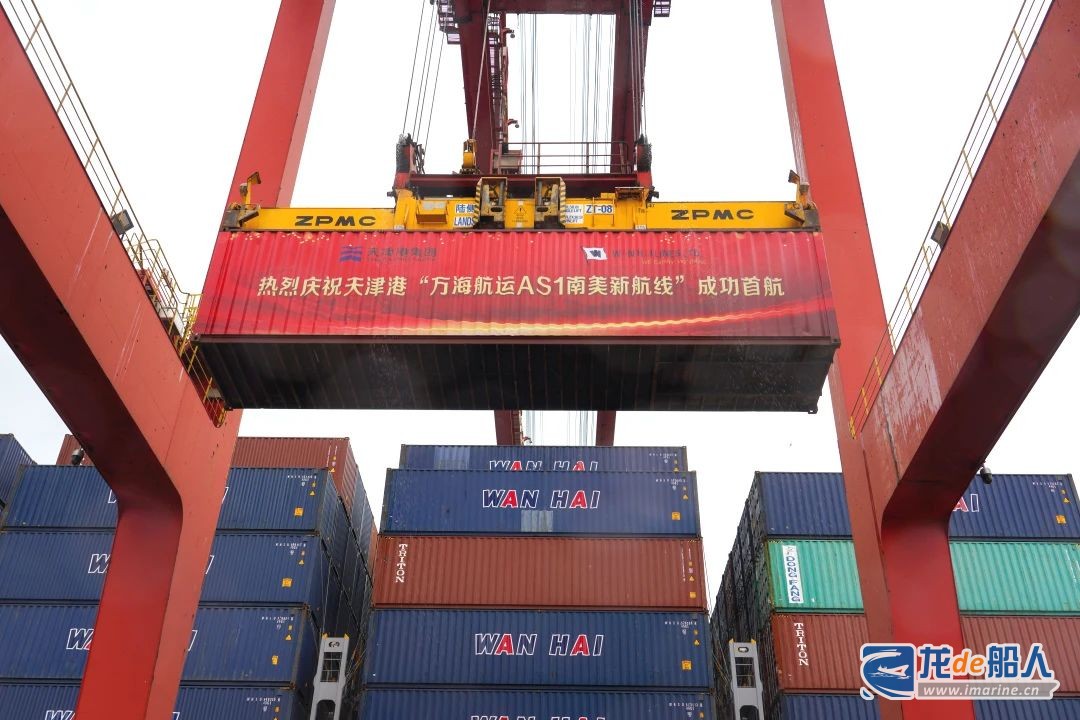 7月29日下午,万海航运“吉春”轮靠泊天津港集装箱码头,标志着天津直航南美新航线正式开通,进一步拓展了天津港全球海运网络布局,强化航线枢纽能级,增强天津港“一带一路”海陆交汇点辐射带动作用。