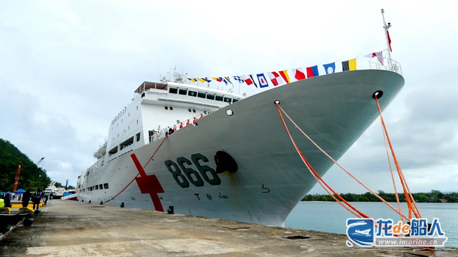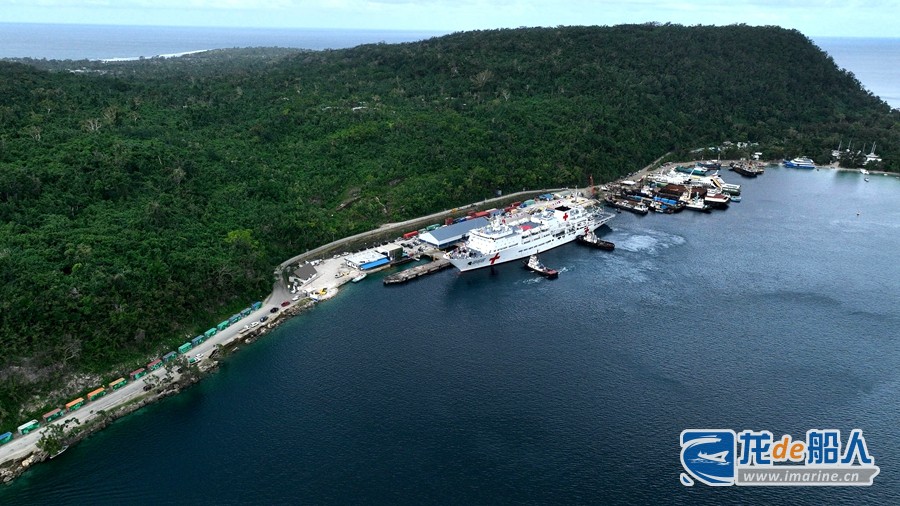 中国海军“和平方舟”号医院船靠抵瓦努阿图共和国维拉港码头。徐巍 摄瓦努阿图共和国位于太平洋西南部。中国对瓦医疗援助已有30年历史,先后派出25批220多名医护人员赴瓦工作。