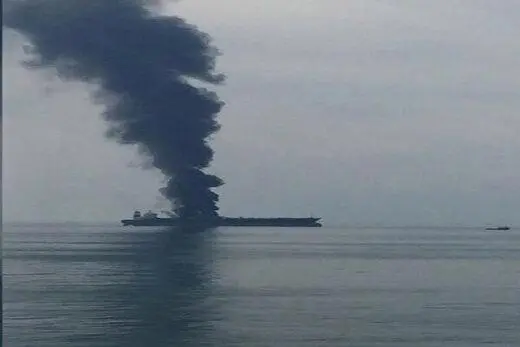 目前火势已经在油轮上蔓延,灭火行动仍在继续。