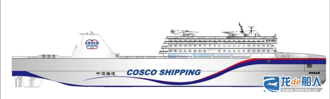 6月10日,广船国际与中远海运集团控股的厦门闽台轮渡有限公司签署生效了1艘300客位客滚船建造合同。该型客滚船由中国船舶集团旗下上海船舶研究设计院(SDARI)设计,船长180米,船宽25.8米,服务航速20节,旅客人数300人,可装载426个标准集装箱。预计将于2025年下半年投入运营。