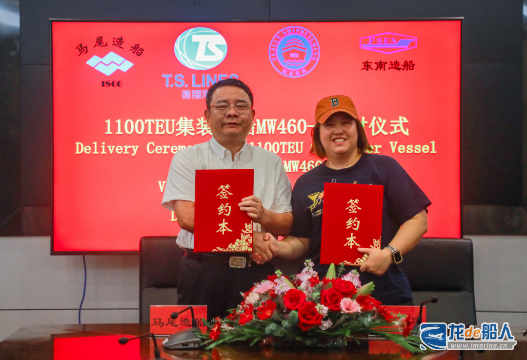 8月22日,福建船政重工旗下企业东南造船建造的1100TEU集装箱船系列5号船1100TEU集装箱船(MW460-5)顺利签字交付。