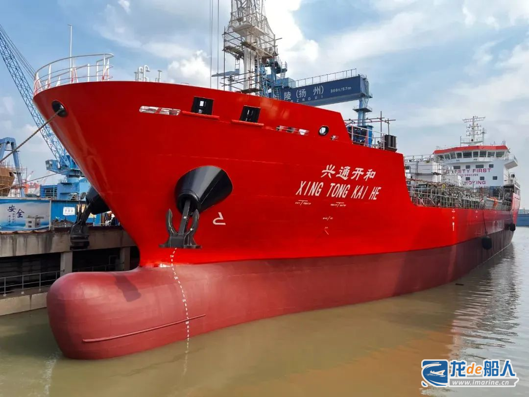 兴通股份首艘适装环氧丙烷化学品船“兴通开和”轮成功出坞吉水