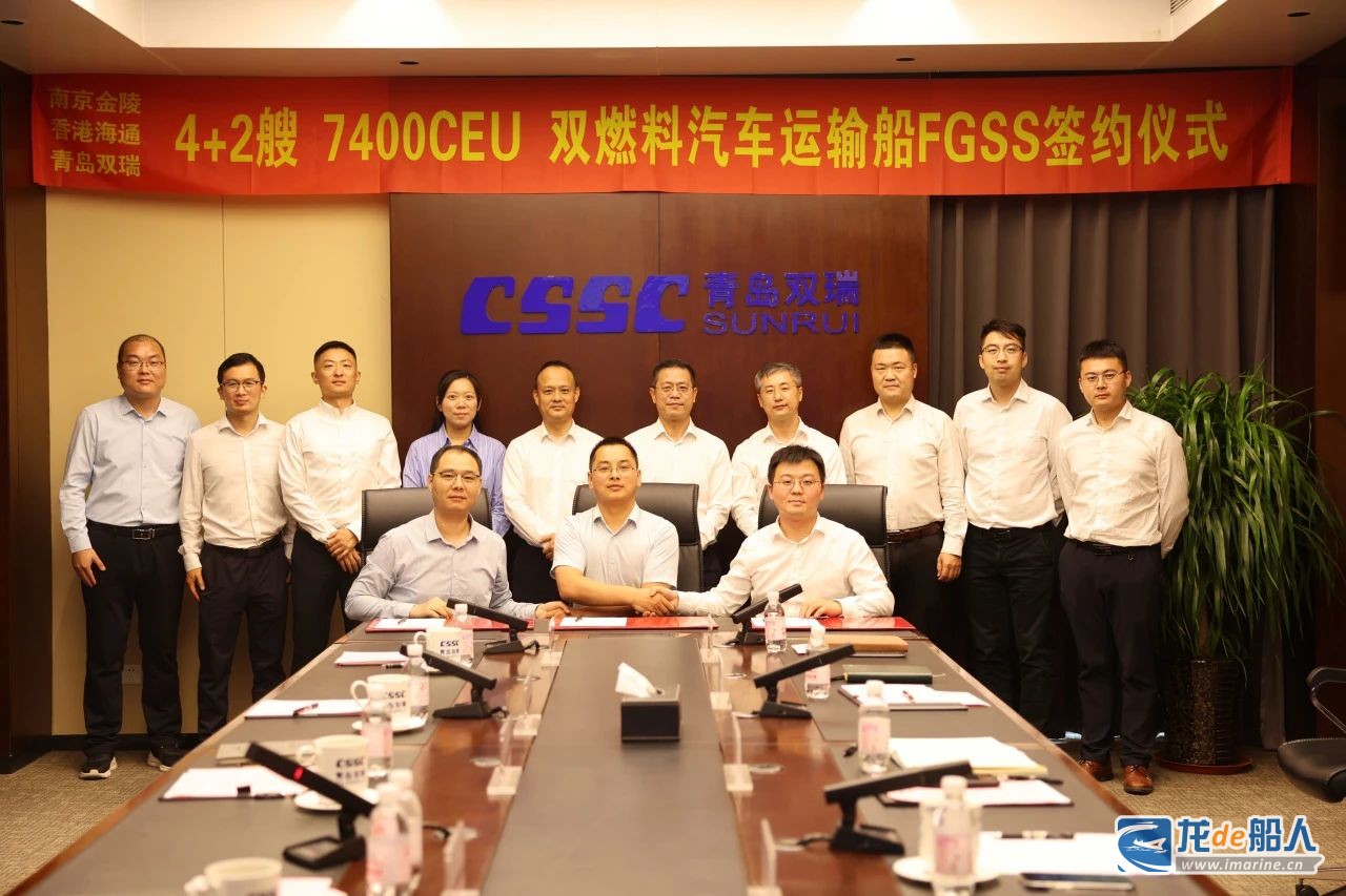 9月14日,青岛双瑞海洋环境工程股份有限公司与招商局金陵船舶(南京)有限公司、香港海通有限公司举行4+2艘7400CEU 双燃料汽车运输船LNG供气系统(FGSS)签约仪式。