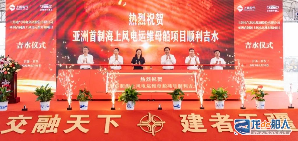 9月16日,振华重工为上海电气风电集团股份有限公司(以下简称“电气风电”)建造的100人和60人两艘风电运维母船吉水仪式在振华启东海工隆重举行。这是亚洲风电整机商首次在海上风电运维领域引入专用SOV,集高效运维、绿色运维、智能运维、安全运维于一体。