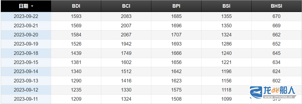 9月22日,波罗的海干散货运价指数(BDI)上涨24点至1593点,创2023年05月11日以来新高水平,较前值涨1.53%。其中,波罗的海好望角型散货船运价指数(BCI)上涨76点至2083点,是过去17周以来最高水平