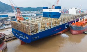 在本次改造项目中,马士基集团将一艘新加坡籍名为“MAERSK HALIFAX”的1.4万标箱集装箱船交由鑫亚船舶修造改装,使其成为甲醇双燃料动力船舶,使用绿色甲醇燃料航行,这也是业内首次进行此类发动机改造。据悉,该船计划于2024年6月抵达六横,改装工期预计为3个月。