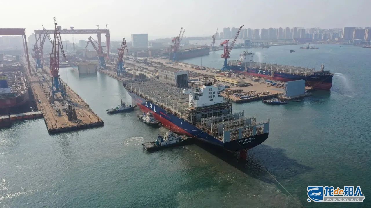 10月24日,中国船舶集团青岛北海造船有限公司为法国达飞海运集团建造的5500TEU集装箱船2号船在造船1号船坞顺利出坞。该船为法国达飞公司集装箱船项目系列船的第2艘船,此次出坞标志着该船整船主体建造基本完成,转入码头进入设备调试和内装收尾阶段。
