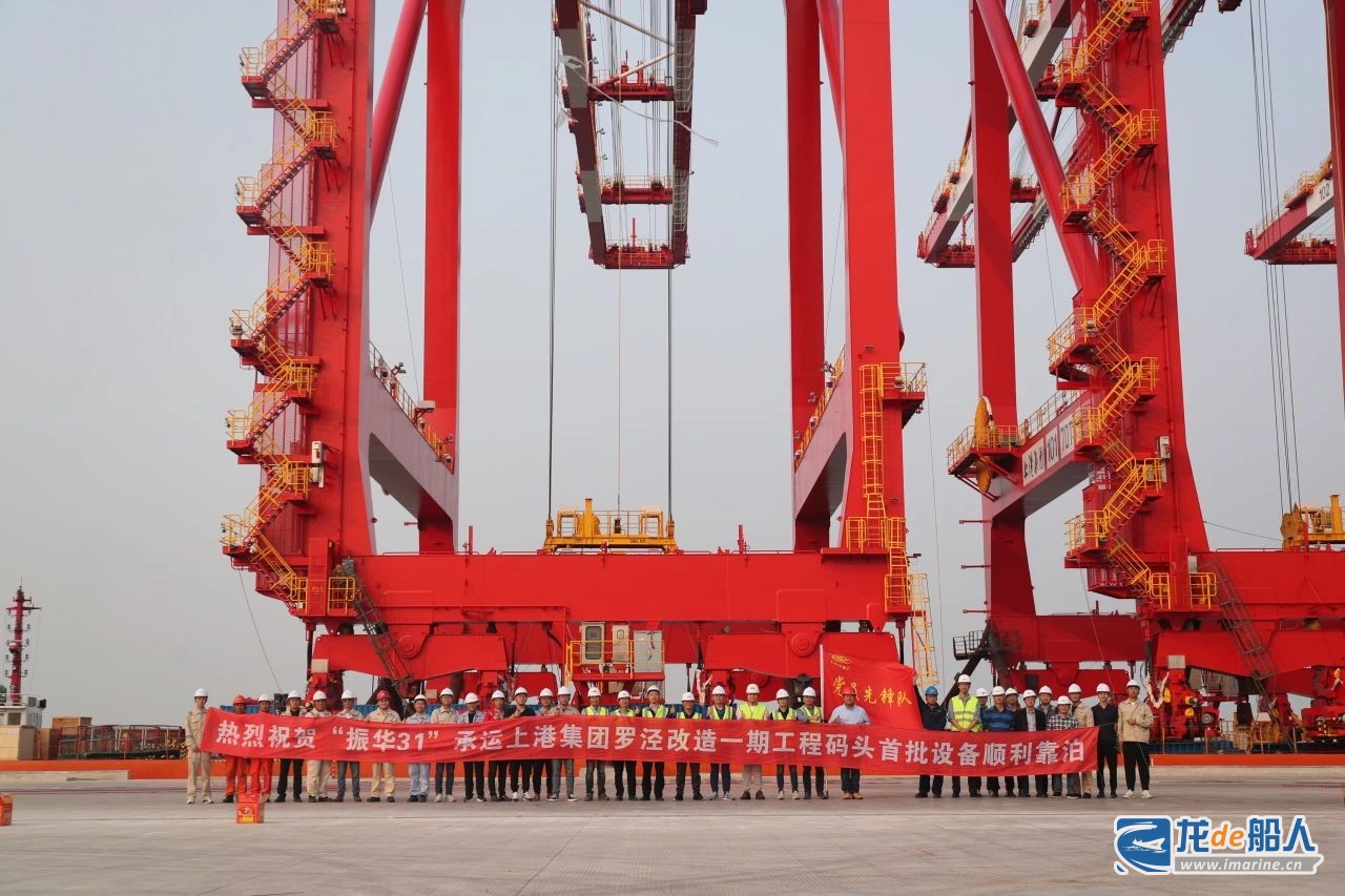 近日,上海振华重工为上海市政府2023年重大项目上港罗泾码头提供的首批4台岸桥和3台轨道吊顺利抵达用户码头,项目团队“首战告捷”。