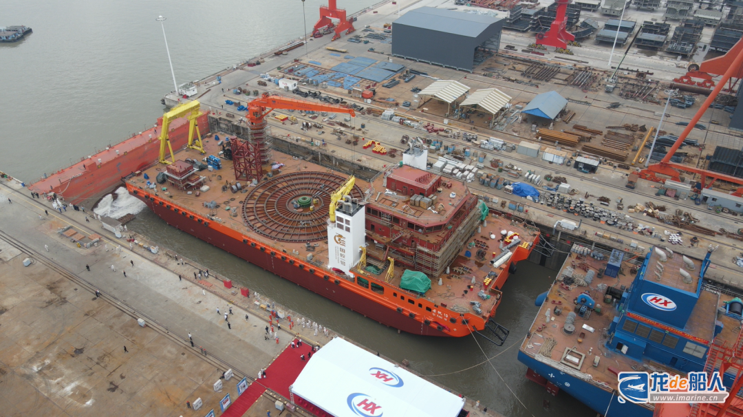 11月9日上午,由我国自主设计、江苏海新船务重工有限公司为浙江启明海洋电力工程有限公司建造的海缆施工船“启帆19号”正式下水。
