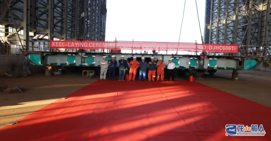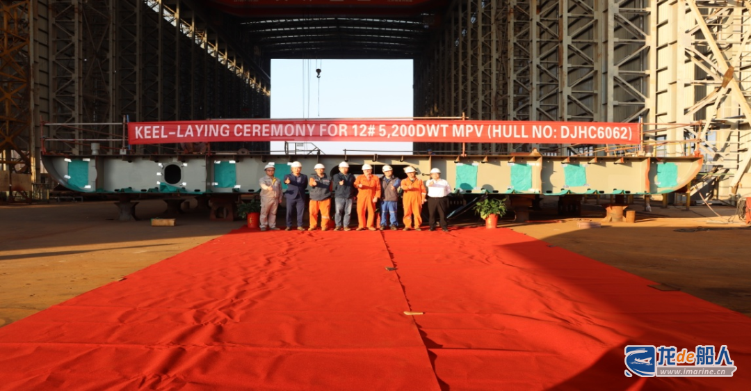 11月7日,11#、12#5200吨多用途干货船(DJHC6061-62)项目在大津重工室内船台顺利实现上船台节点。