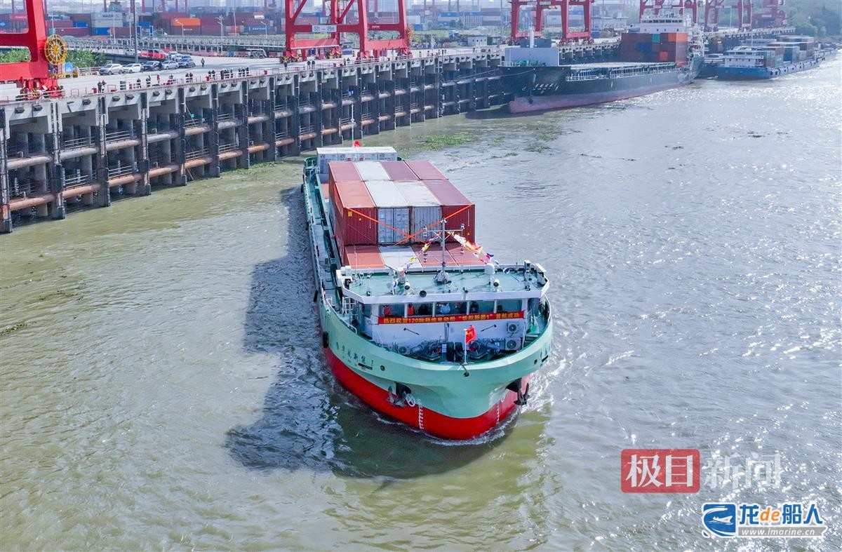据了解,“华航新能1”轮,是湖北第一艘纯电动集装箱船,开启了绿色清洁能源用于长江、汉江航运的新篇章。该船为国家工信部批准的示范项目,由长航船舶设计院设计,枝江盛懋(mào)船厂建造,驱动电池采用国家电网的专利技术,设计航速18千米/小时,单程航程175千米,可装载120个标准集装箱。