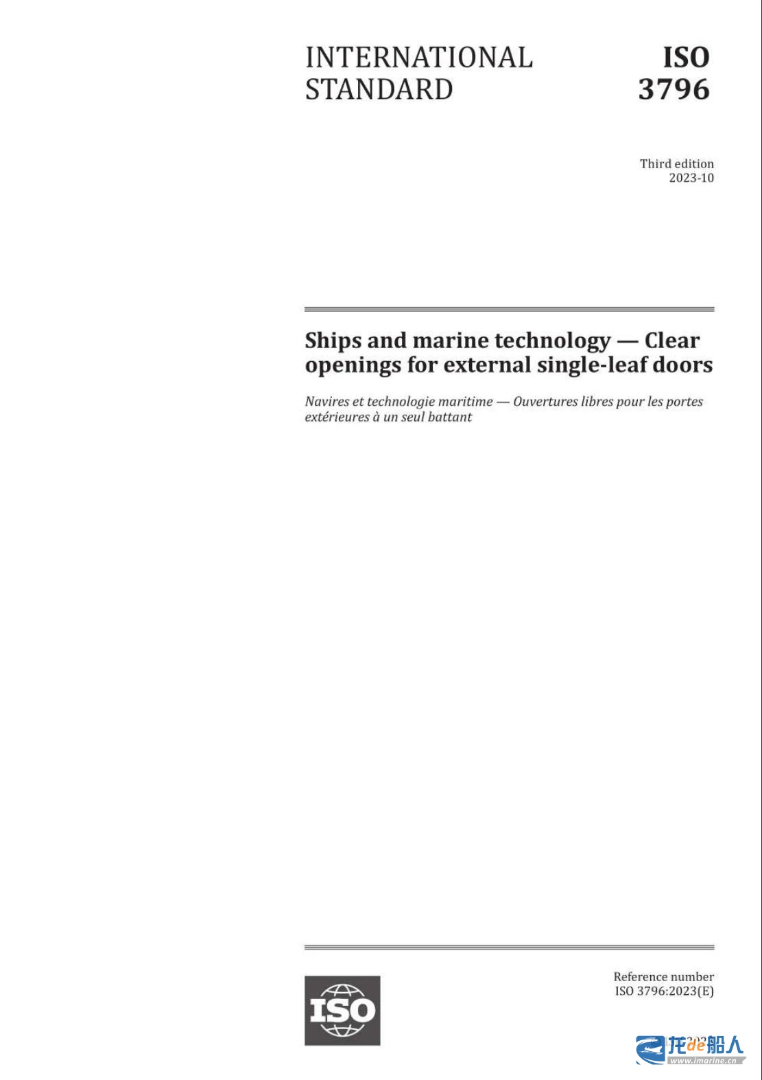 近日,中国船舶集团旗下上海外高桥造船有限公司首次主导编制的国际标准ISO 3796:2023《船舶与海上技术 外部单扇门通孔》由国际标准化组织(ISO)正式发布,实现了外高桥造船主导编制国际标准 “零”的突破。