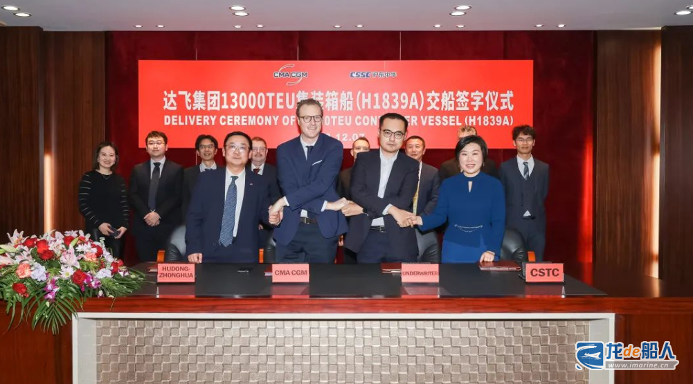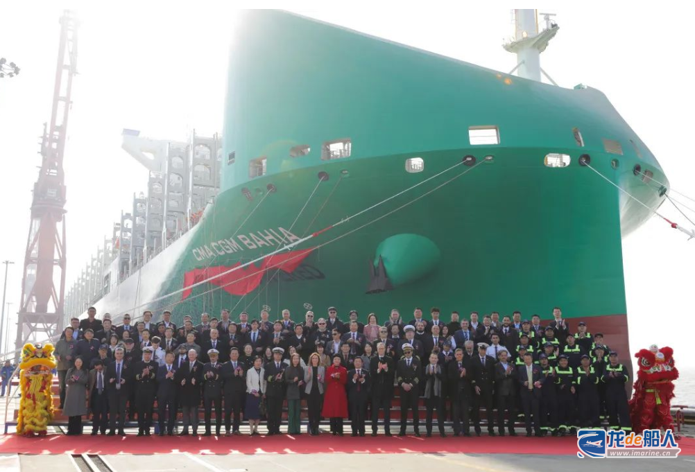 12月7日,中国船舶集团沪东中华造船为法国达飞集团建造的全球首艘13000TEU液化天然气(LNG)双燃料动力大型集装箱船系列首制船“CMA CGM BAHIA”号,在长兴造船基地命名交付。这是继全球首创LNG双燃料动力23000TEU超大型集装箱船,沪东中华完工交付的又一款全球首型清洁能源集装箱船,持续巩固大型、超大型双燃料集装箱船建造领军地位。