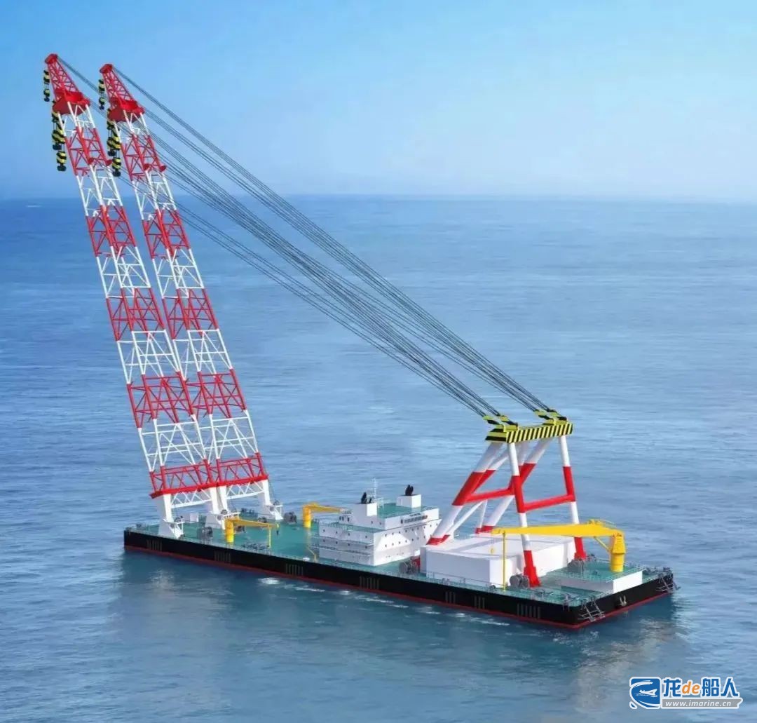 5500吨双臂架变幅式起重船是振华重工与中交二航局合作打造的国内迄今同类型船舶中技术最为先进、起重能力最大的双臂架变幅式起重船。项目总长165米,型宽52米,型深11米,吃水6.5米,配备8点锚泊定位系统,功能定位聚焦桥梁工程、覆盖水工工程、兼顾海上风电领域。其起重量、起升高度可以覆盖130米跨度非通航孔桥梁吊装,具备47米限高通航能力,堪称“建桥神器”。