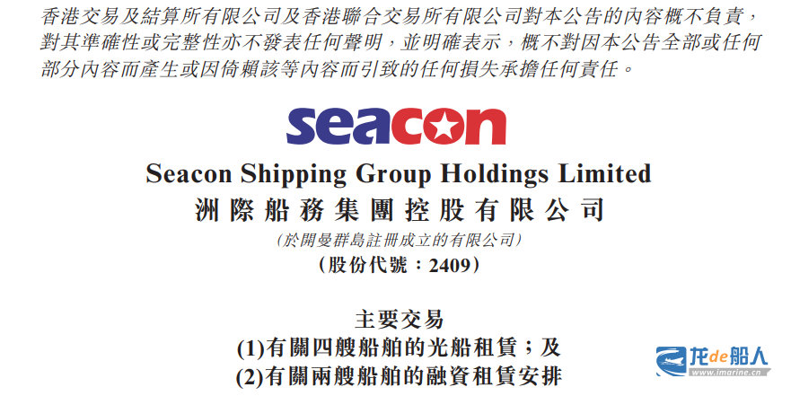 12月18日,洲际船务集团控股有限公司发布《主要交易(1)有关四艘船舶的光船租赁;及(2)有关两艘船舶的融资租赁安排》的公告。