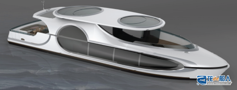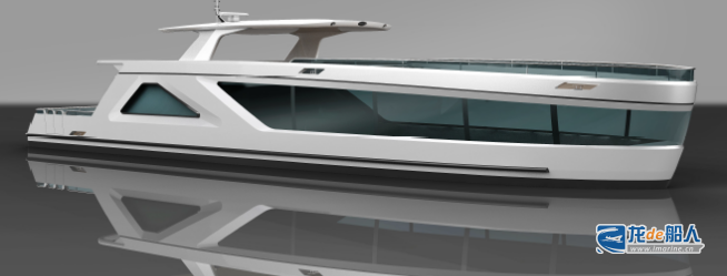 23米新能源游船,型宽5.8m,设计吃水1.2m,采用纯电池动力系统,设计最大航速达到7-8kn,最大载客量为35人。