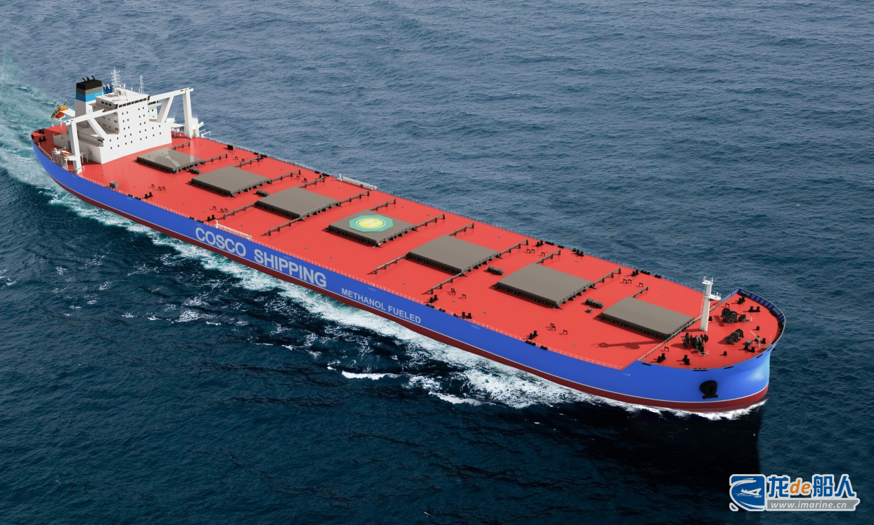 该船型由中远海运散运、中远海运重工等联合开发,是目前世界最大最先进的甲醇双燃料矿砂船。船长339.9米,型宽62米,型深30米,设计吃水21.25米,主机排放达Tier Ⅲ标准,配备大功率轴带发电机、脱硫塔和高效节能装置等设备。船舶为大舱容设计,满足装载铝土矿、铁矿等不同密度的货物。该船型在设计之初就从实际使用需求出发,充分考虑了CII不同阶段的要求,创新性地提出了甲醇兼用舱的设计方案,能灵活满足不同阶段碳排放指标。
