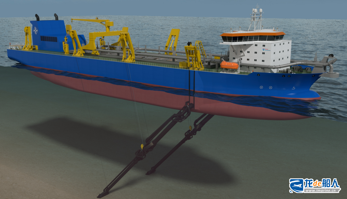 该型35000方巨型耙吸挖泥船是国内首批耙吸式大型疏浚装备,挖深可达120米,泥舱最大装载量接近56200吨。船舶采用先进船型设计,在高航速下阻力降低10%以上;实现航行疏浚双协同、疏浚作业全自动,提升智能化水平;装备共轨燃油系统、甲醇燃料系统,降低碳排放;能适应“强破土、大挖深、远运距、长吹距”的远海作业需求,引领全球耙吸挖泥船向大型化发展,具有里程碑意义。