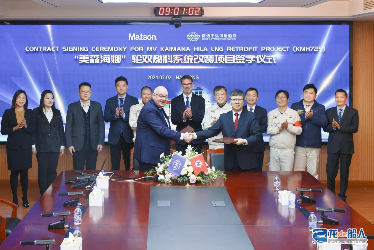2月2日,南通中远海运船务与美森船东公司签订“KAIMANA HILA”轮LNG双燃料供气系统改造项目订单。