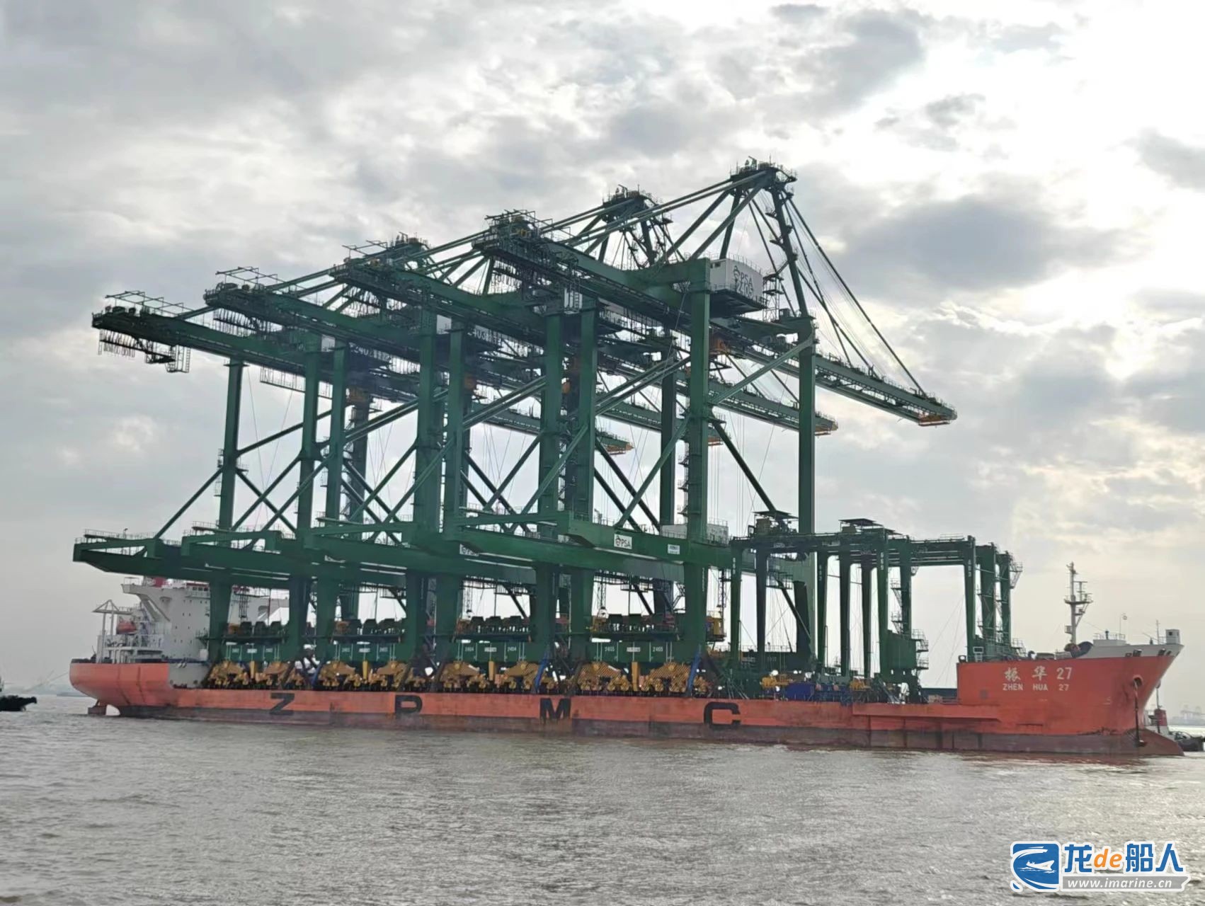 2月14日,“振华27”轮装载着新加坡大士码头第一批4台双小车自动化岸桥和新加坡巴西班让码头第二批3台轮胎吊从上海振华重工长兴分公司码头发运。